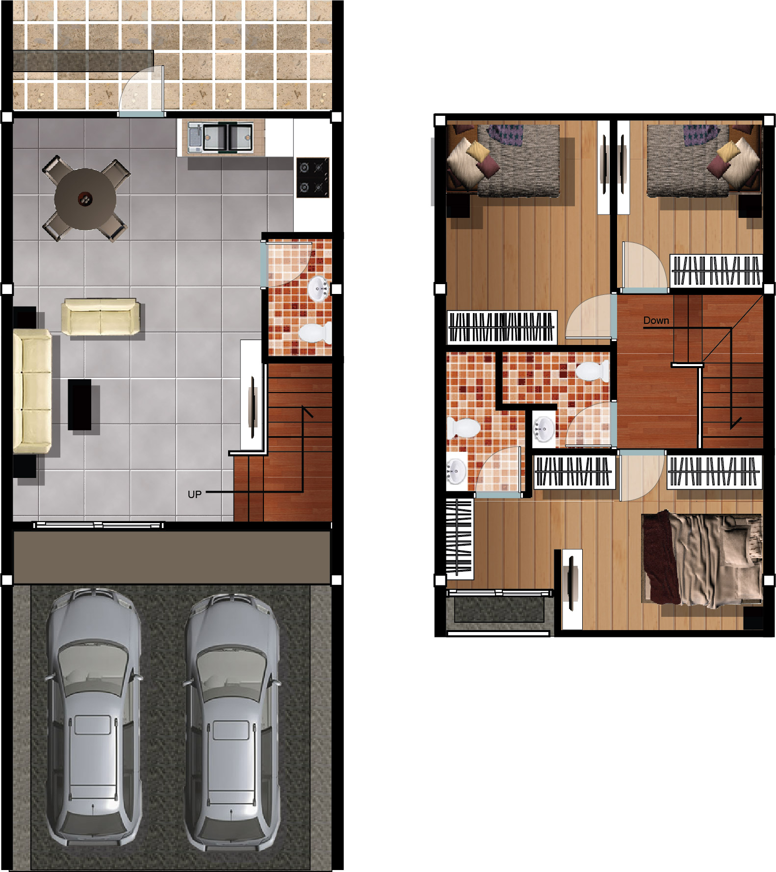 slider1ทาวน์โฮมเนื้อที่เริ่มต้น 21.4 ตารางวา ทาวน์โฮม 2 ชั้น Type B หน้ากว้าง 5.7 เมตร เนื้อที่เริ่มต้น 21.4 ตารางวา พื้นที่ใช้สอย 136.8 ตารางเมตร 3 ห้องนอน 3 ห้องน้ำ 2 ที่จอดรถ GALLERY